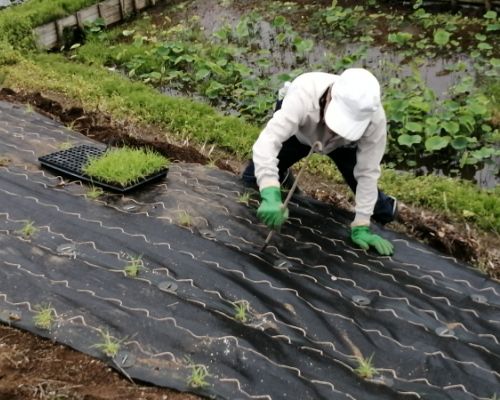 定植後に雨が降れば潅水作業を省けるというメリットもあります。