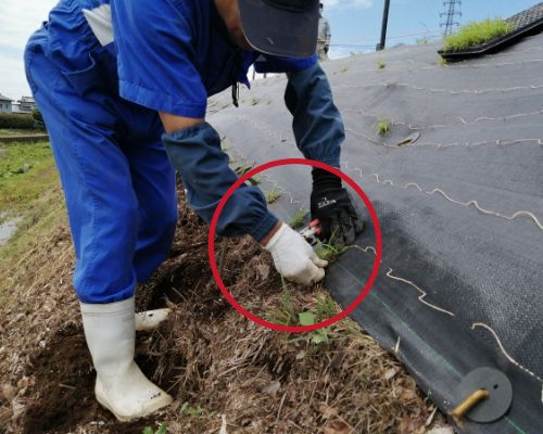 不陸が大きい場合、苗がシートに埋もれてしまうことがあるので、ここでひと手間を惜しまないこともキレイな景観のためには大切です。