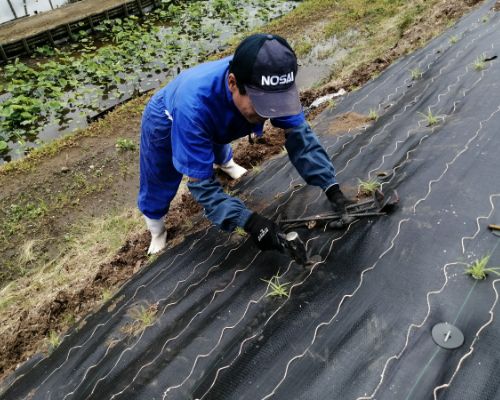 ___普通の防草シートだとここで終わりですが、べた~とシートはシート施工後に苗を定植します。