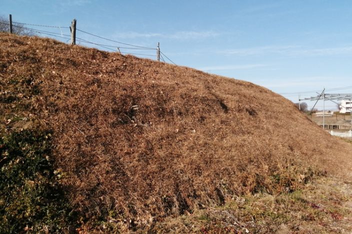 蓮園内の広大な法面の雑草対策が課題に