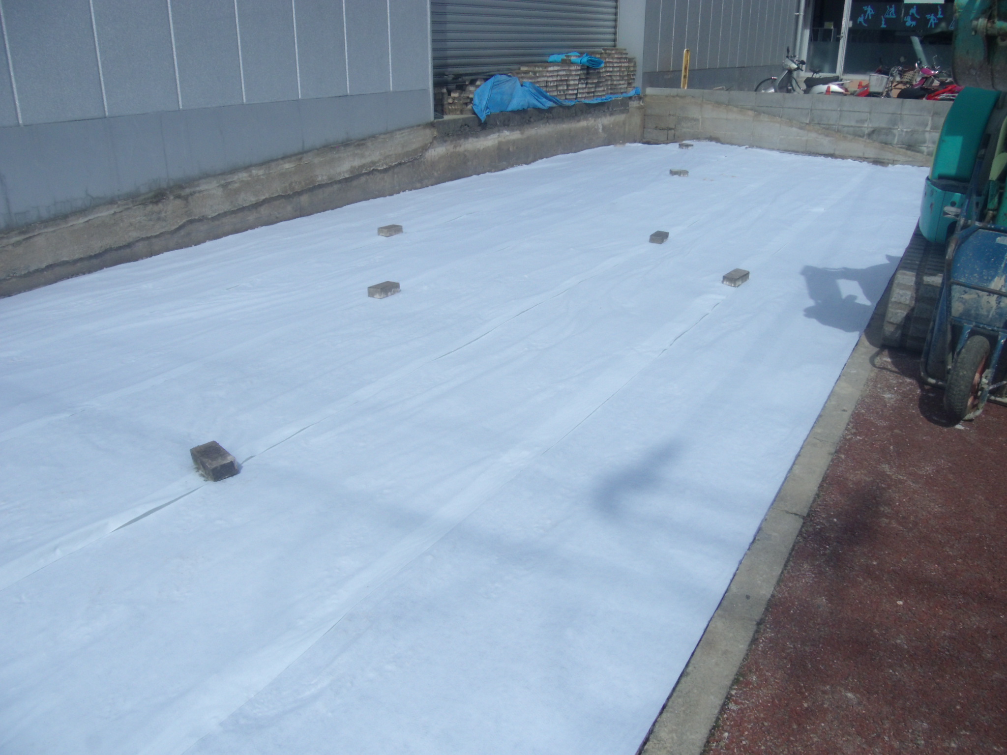 下地作業完了後、透水シートを敷きます。