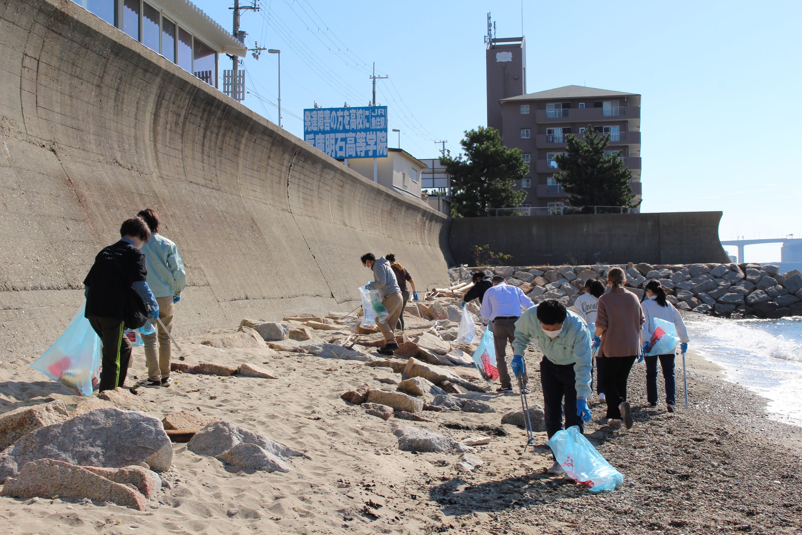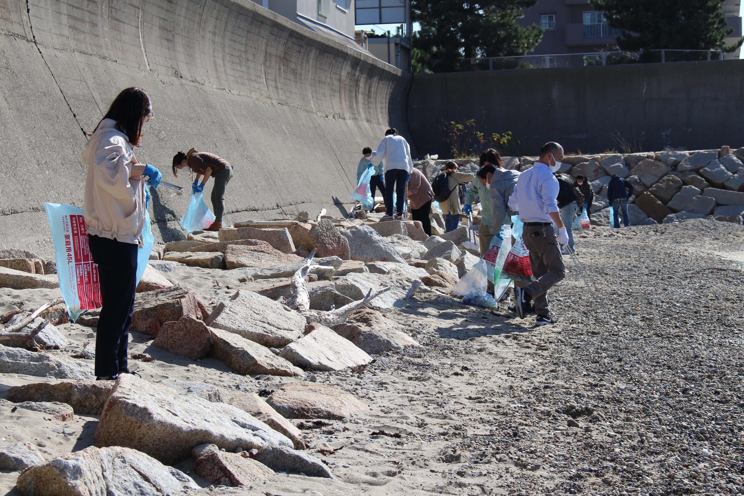 4回目となる今年10月、東舞子海岸にグループ各社から20名ほどのメンバーが集い海岸清掃をおこないました。