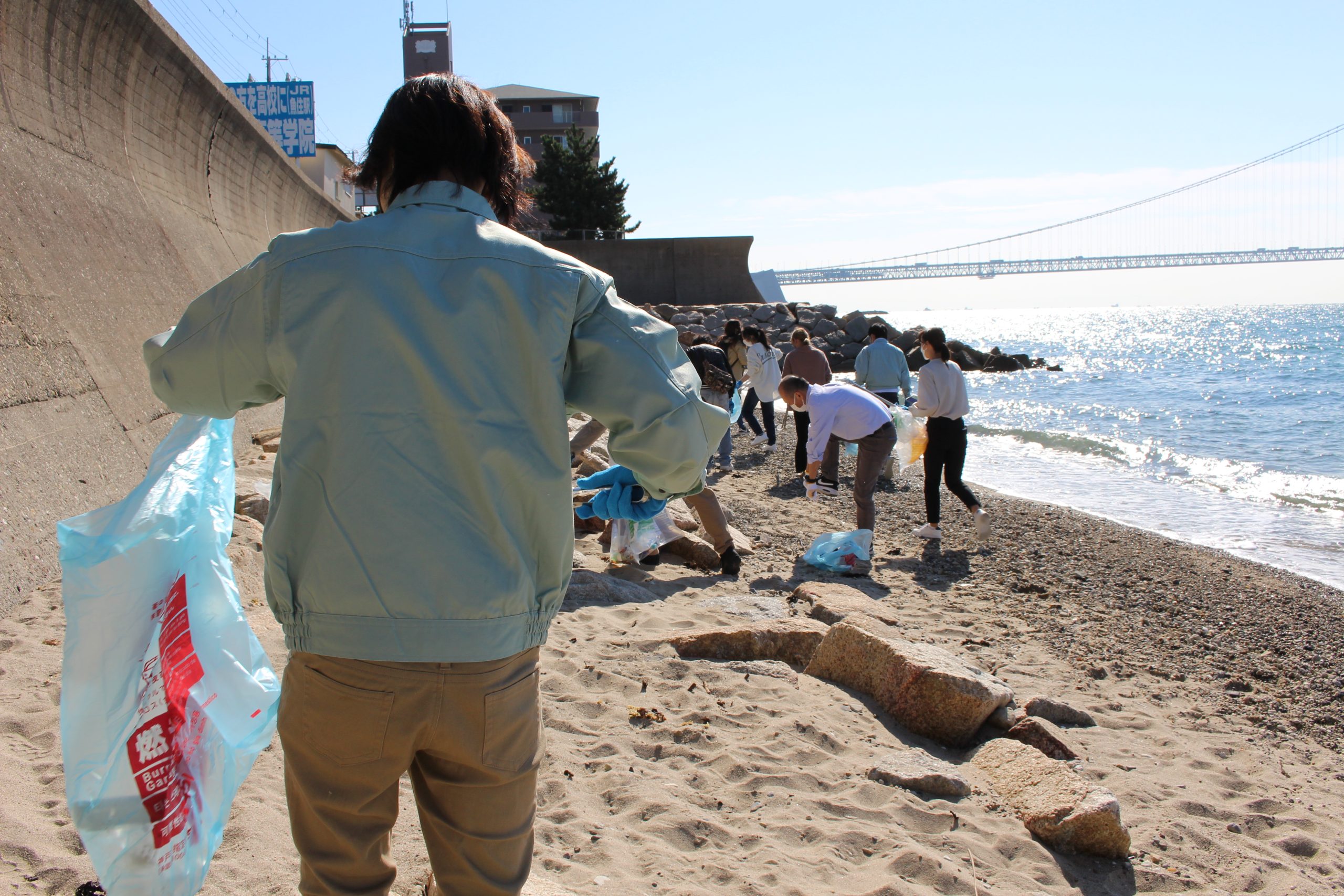 当社では2018年12月に「プラスチック海洋ごみ問題の解決に向けた宣言」に署名し、それ以来3回、神戸市内の海岸清掃をおこなっています。