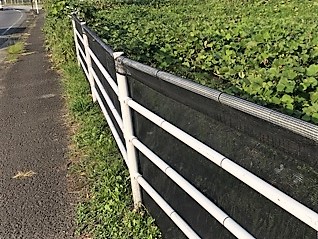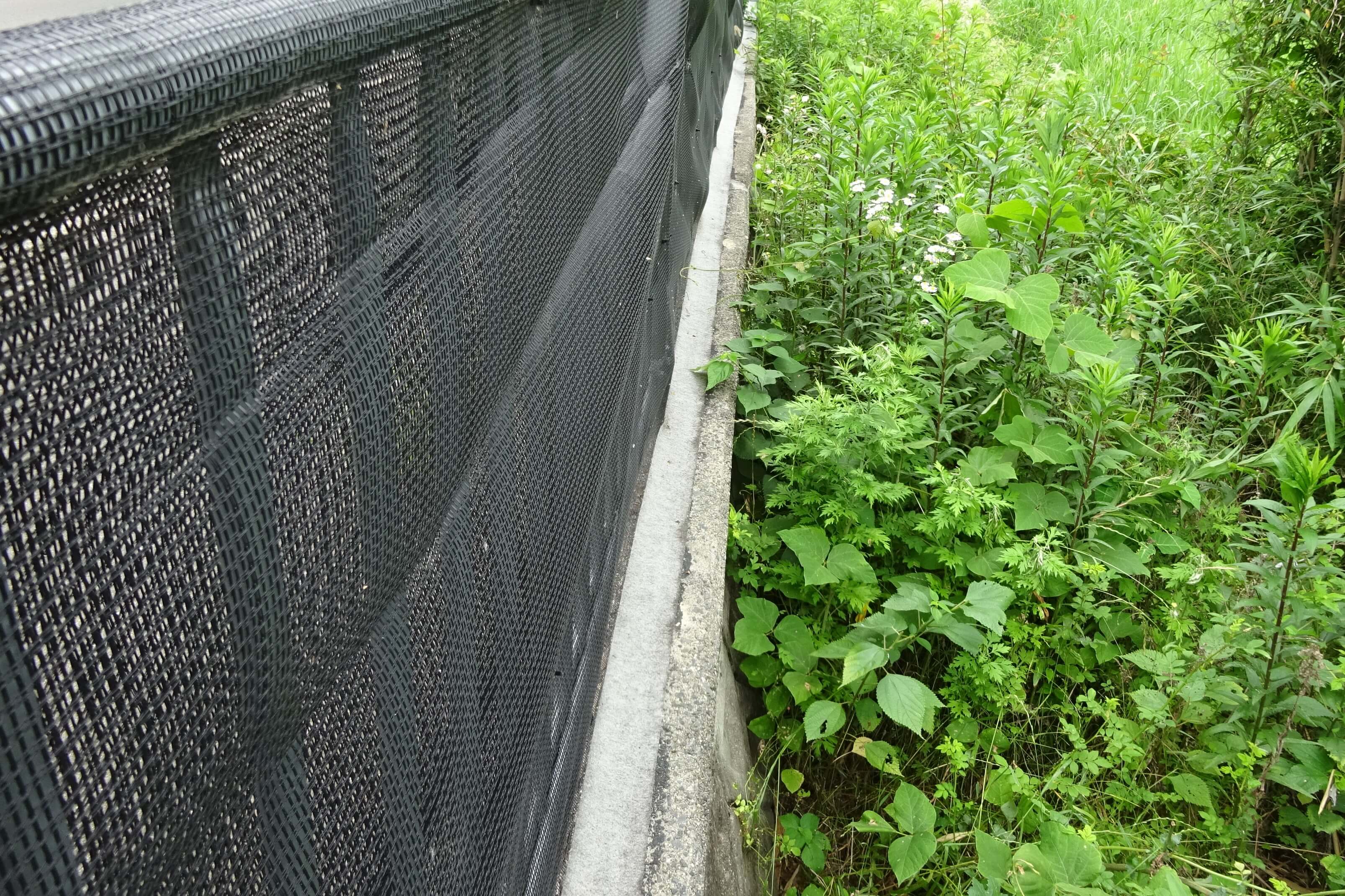 撤去が大変な葛の登攀を防ぐ「バリオスネット」。
