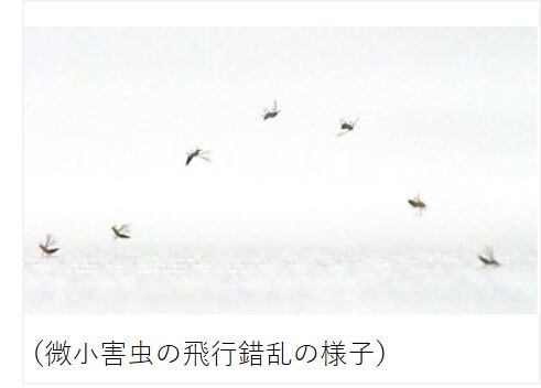 紫外線域を含む高反射により、微小害虫の「飛行錯乱」を誘発させ、飛行害虫の落下を促します。