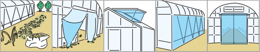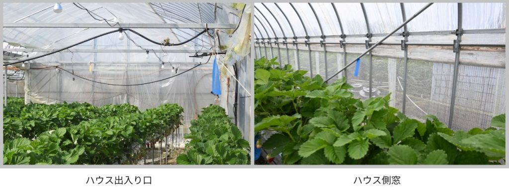 ・ハウスの出入り口や側窓・暖房機付近