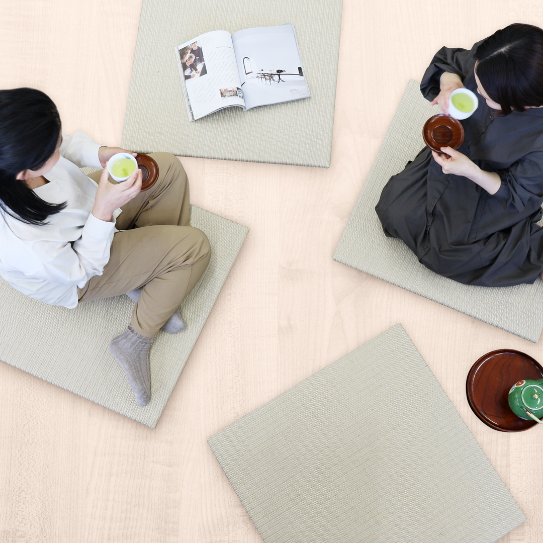 芯材にはそれぞれ適度なクッション性をもたせており、床に直接敷いてもやわらかな感触です。
